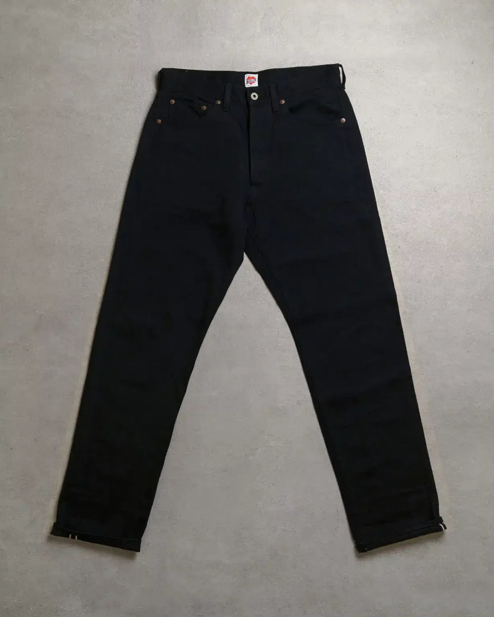 Inspiration for the ‘Roku Roku’ comes from the classic denim styles of the late 1960’s. With a medium to high rise, the fit is on the slimmer side but not tight and offers a classic Ivy style look when worn. Available in four fabric/colour options, this black pair is also very similar to 1980’s Made in USA Levi’s, with the addition of a selvedge ID. All made in Japan, these come one wash as standard and feature a period correct Allevol paper patch with hand stamped sizing as well as a laurel wreath donut button fly and red selvedge ID.
