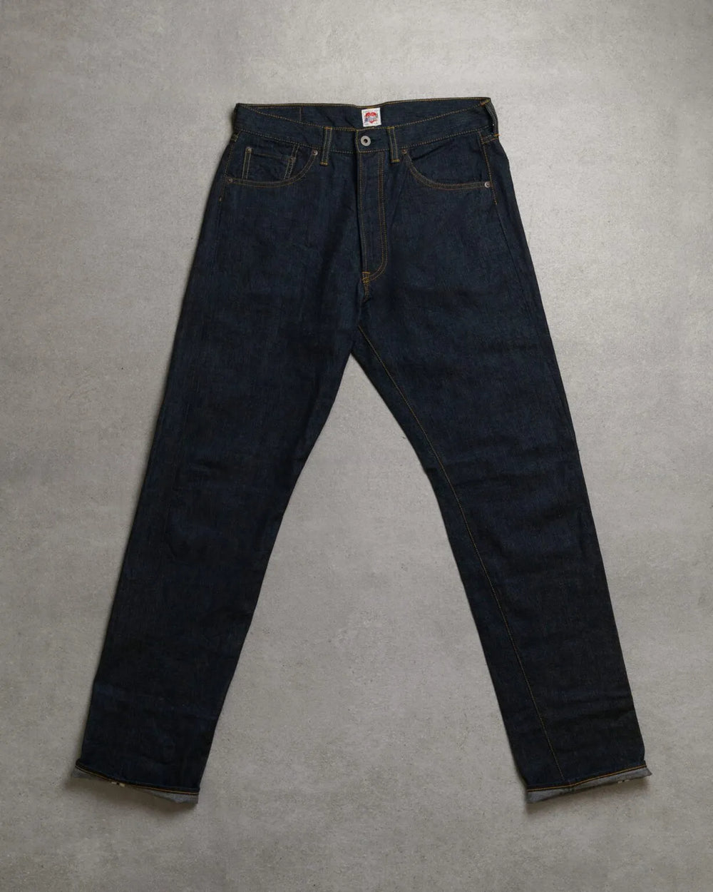 Inspiration for the ‘Roku Roku’ comes from the classic denim styles of the late 1960’s. With a medium to high rise, the fit is on the slimmer side but not tight and offers a classic Ivy style look when worn. Available in four fabric/colour options, this indigo pair features a rare left hand twill weave, inspired by a favoured pair of Lee denim. Left hand twill helps create a softer denim over time, with a more open weave. All made in Japan, these come one wash as standard and feature a period correct Allevol paper patch with hand stamped sizing as well as a laurel wreath donut button fly and red selvedge ID.