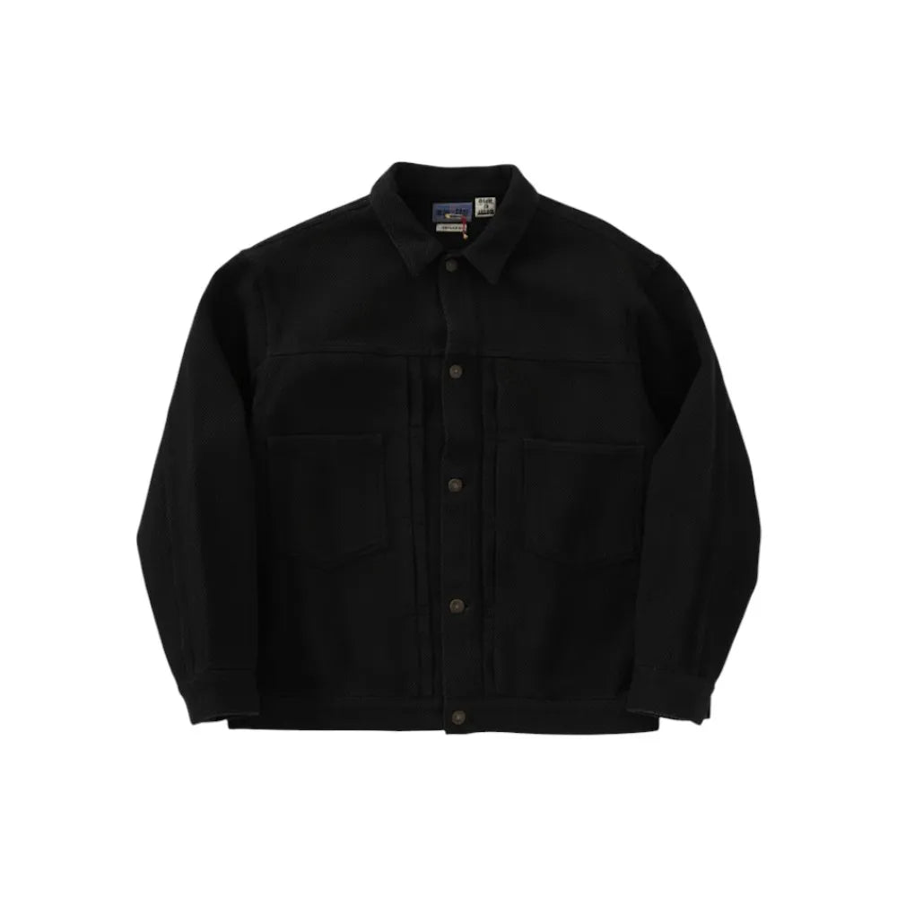 Blue Blue Japan Mens Woven Double Cloth Sashiko Dark Black Trucker Jacket