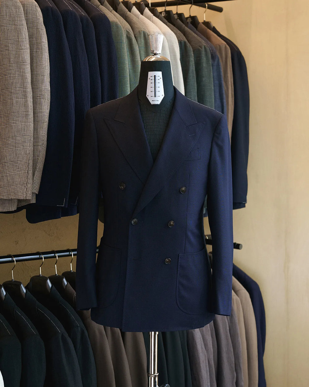 Sport Jacket Collection from Drop6. Crafted from luxurious wool in a refined weave, this double-breasted sport jacket offers a perfect balance of structure and slouch. With unpadded shoulders and a soft silhouette, it drapes naturally for effortless smart-casual style in warm weather.