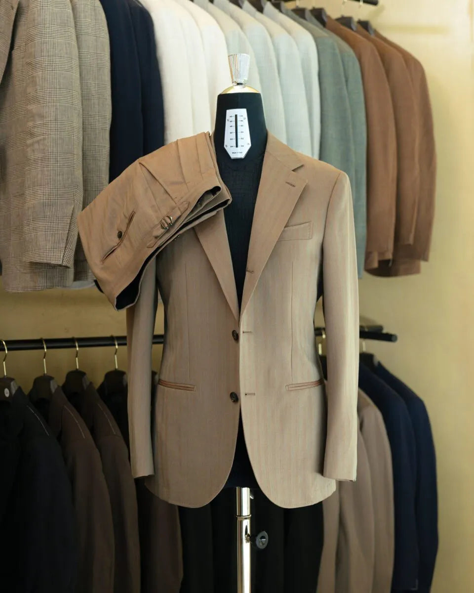 Suit Collection by Drop6, The half Canvassed construction Suit Jacket, inspired by Italian soft tailoring style, features wide lapels, unpadded shoulders and quarter lining, Milanese Buttonhole, all seamlessly executed. The Suit Trouser is constructed with two forward pleats. The trousers is made with a full cut silhouette for your seats and thigh while having a soft taper towards the leg opening.