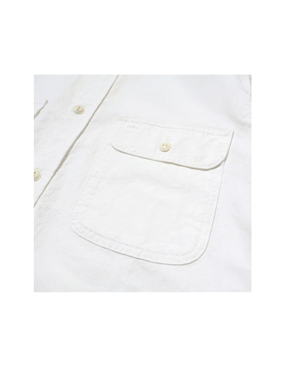 The design retains the atmosphere of a work shirt, with triple-needle wrapping stitching, triangular gusseted fabric on the sides, and slightly larger flap pockets.