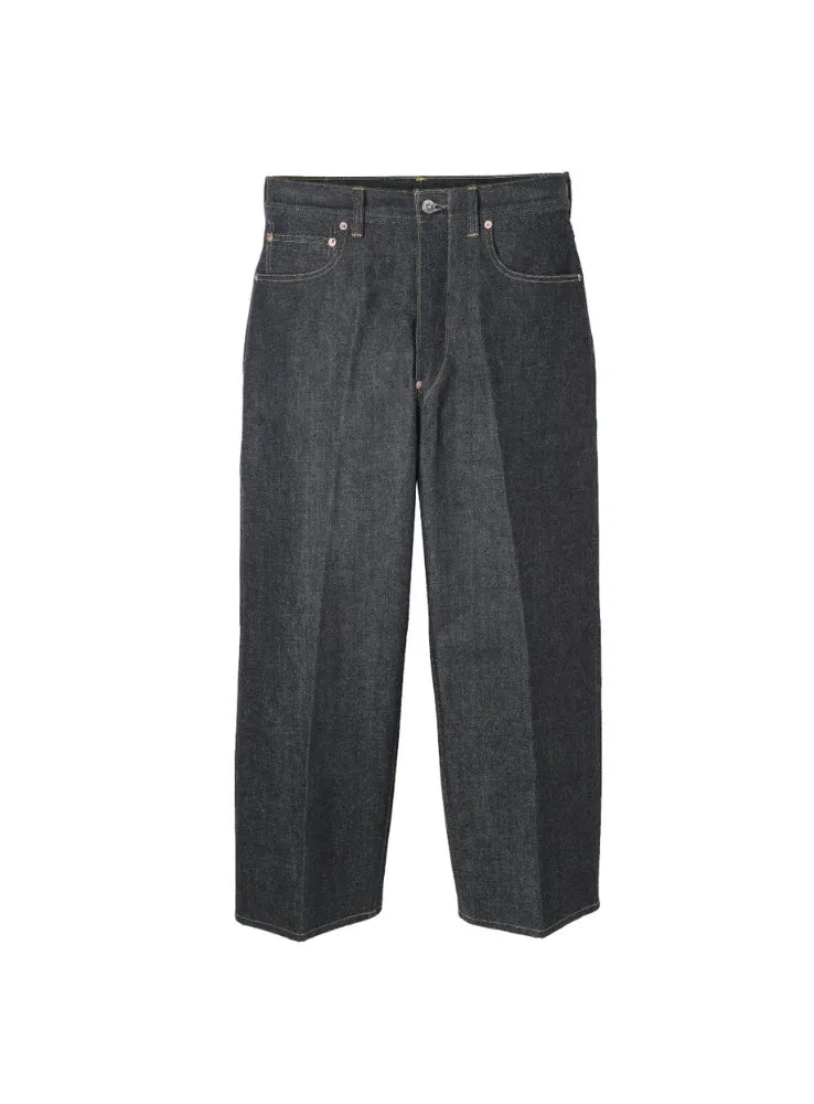 In the early days of American products Denim pants were born as work clothes for workers to wear. I thought about exercise for a relaxed waist and crotch It is made and the waist position is fixed with suspenders, Adjust the width with the back strap attached to the back At that time, it was called Waist-overalls. I followed this background Workwear brands from the 1930s to the 40s Products made during the transition period are the roots of design The buckle back style made by 5 pocket denim pants. The silhouette is a middle straight cut with a three-dimensional feeling. Large hip pocket that looks like workwear and crotch rivets, back straps on the back, etc. It is a detail unique to the historical background. Baptized color fading with good dyeability and gloss Using a middle-ounce Selvic denim that can be embodied. Sunforize (anti-shrinkage processing) is applied It is a denim with little shrinkage. Iron donut buttons, prongs, and needle buckles Take your time to select and use the fabric You can enjoy the process of aging.