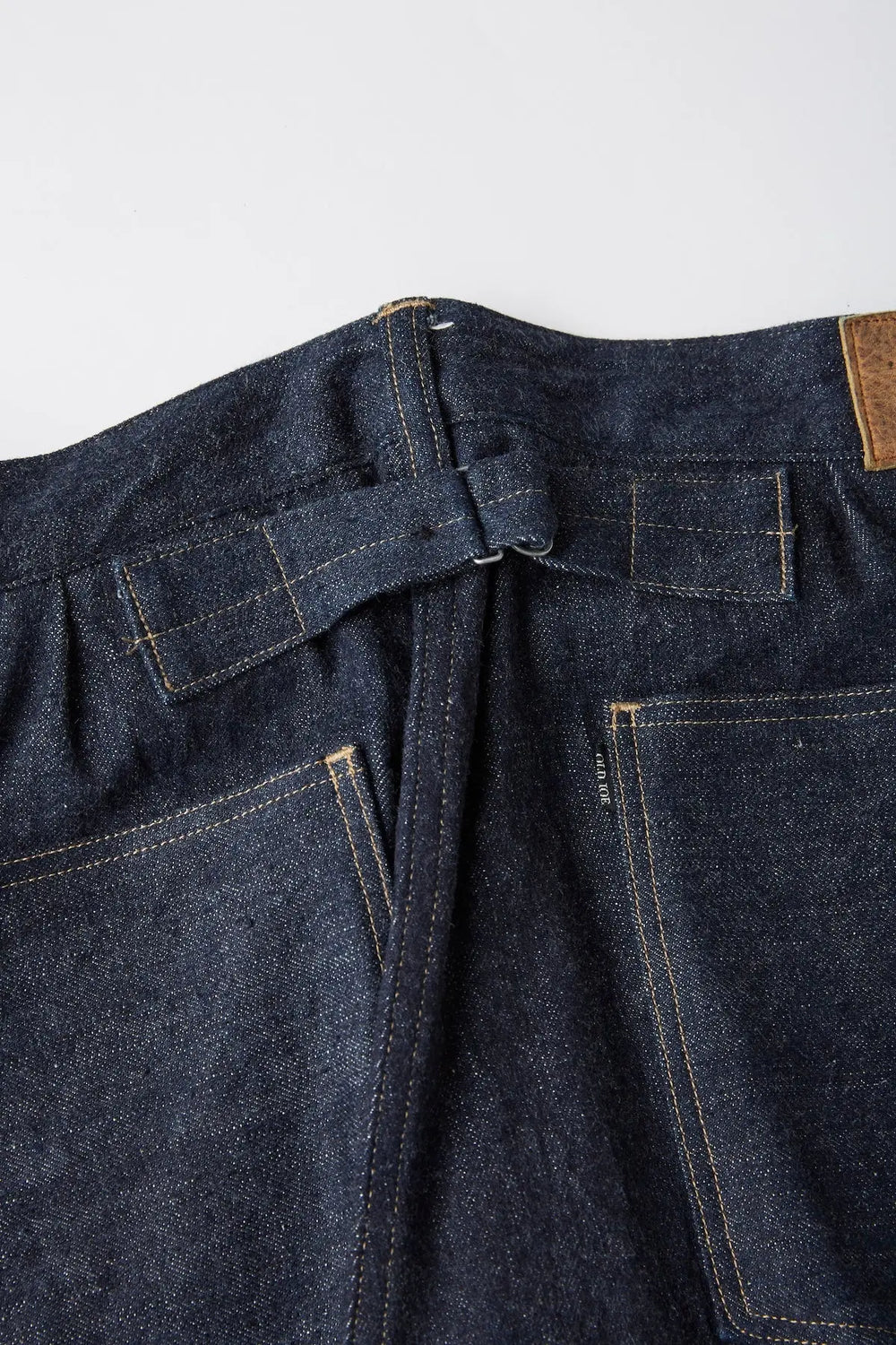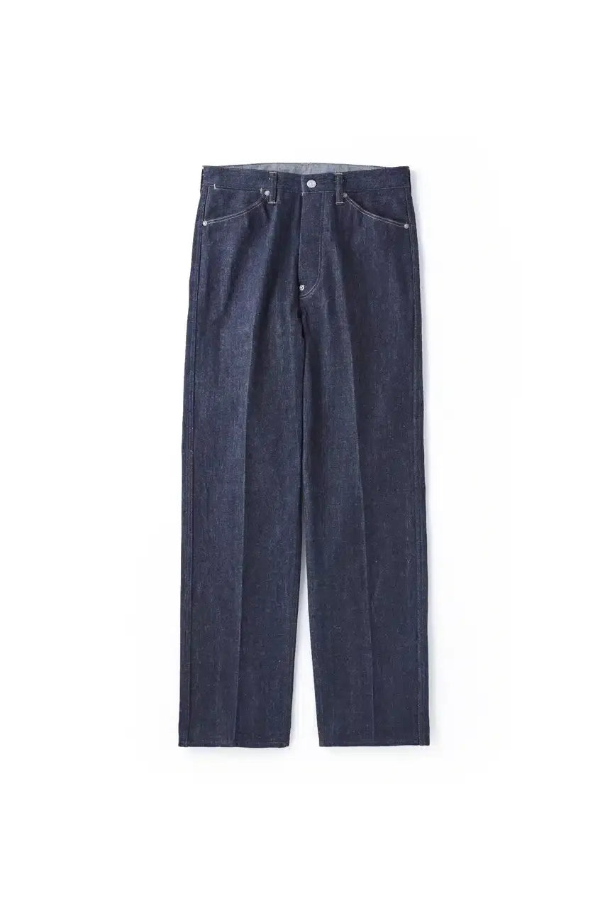 ตัวกางเกงใส่เส้นครีสตรงกลางเพื่อเพิ่มความเรียบร้อย ใช้ผ้าเดนิมน้ำหนัก 12.4oz ที่ถักทอพิเศษจากเมือง Ibara โดยใช้ด้ายที่พัฒนาขึ้นมาเฉพาะสำหรับ OLDJOE: