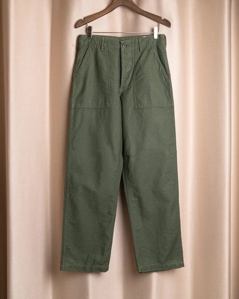 Pants designed with the motif of 1960s American military workwear. Since its inception in 2006, it has undergone several minor changes to its current form. The material is made from original uneven yarn, woven into reverse satin. With repeated wear, the fabric ages and fades like VINTAGE, allowing you to enjoy its vintage look. The silhouette is slightly wide.