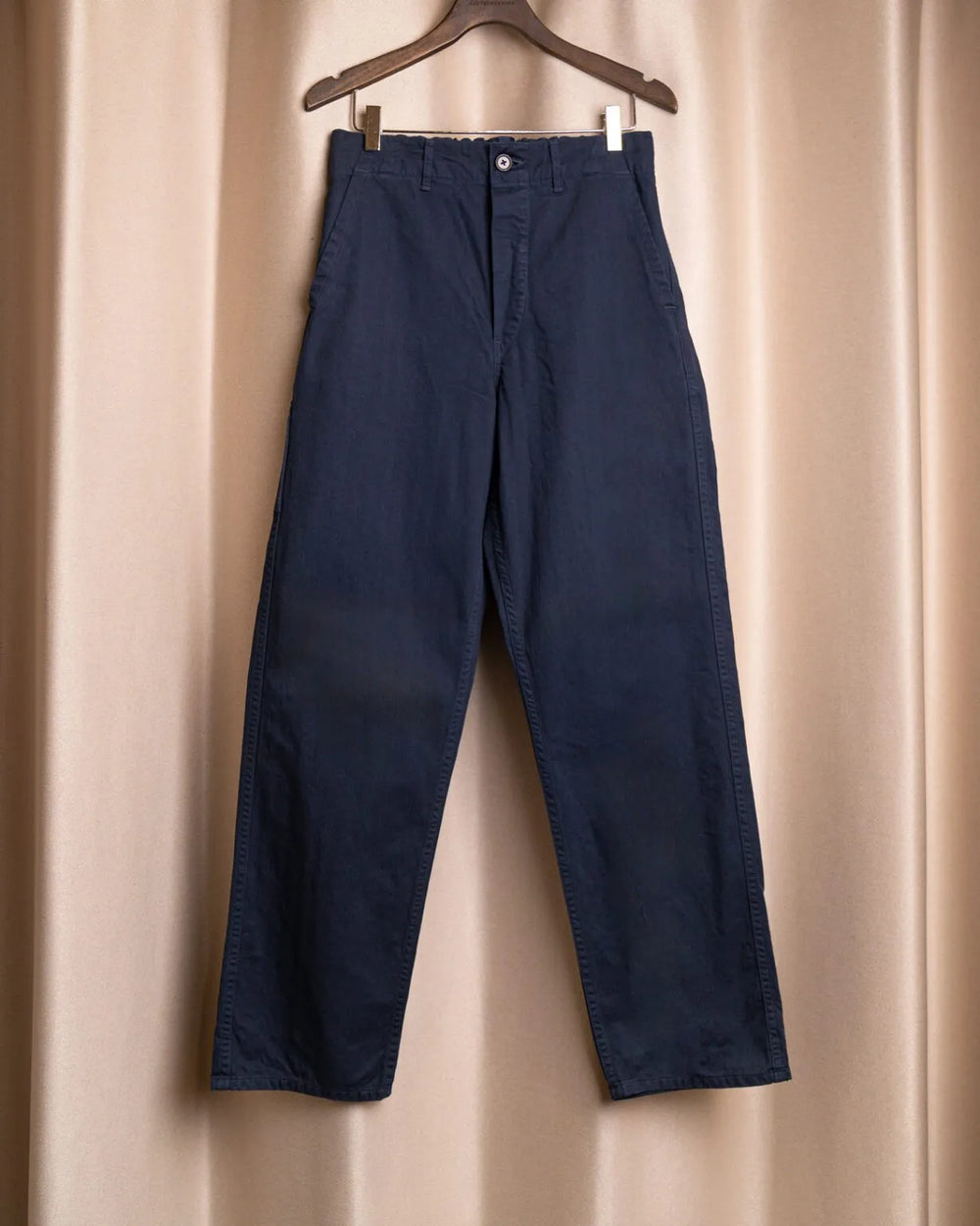 The French Work Pant from OrSlow a lightweight, wide-fitting chino with elasticated waist band and a very subtle woven herringbone stripe throughout. Much like other OrSlow products, these pants aim to wear in well and remain comfortable and durable throughout their use. They are finished with four large pockets and one small utility pocket on the right leg.