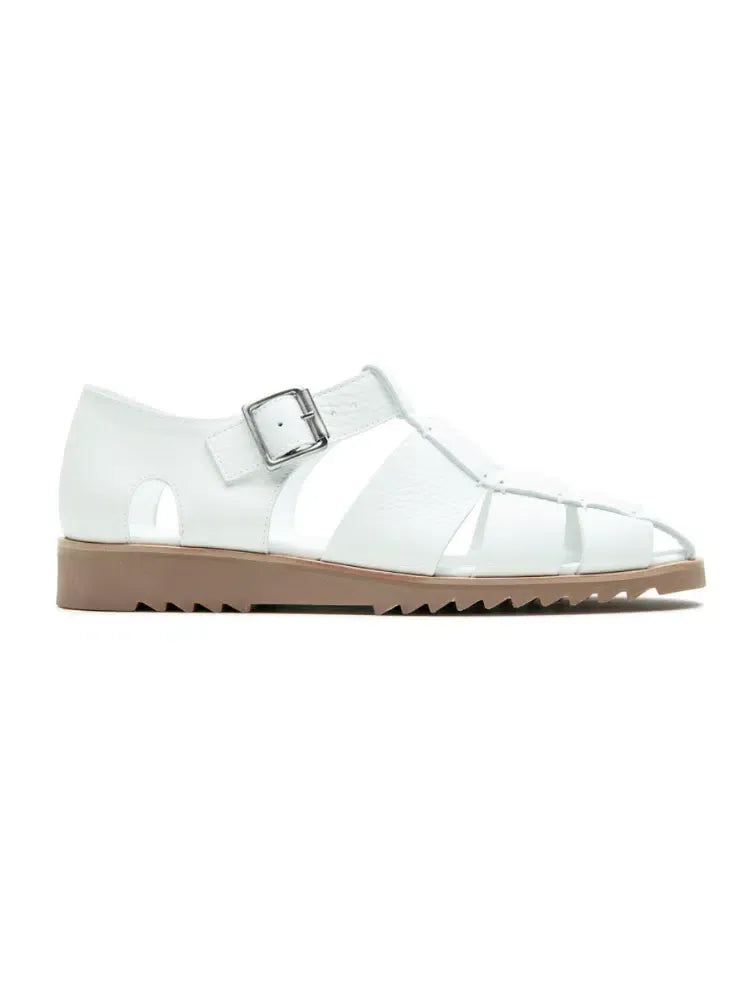 Paraboot Pacific – Blanc คือรองเท้า Leather Sandal ที่ออกแบบเพื่อผสมผสานความโปร่งสบายเข้ากับความประณีตในแบบฉบับของ Paraboot โครงสร้างรัดส้นแบบสาน (Fisherman Sandal) มอบการระบายอากาศที่ดีและกระชับเท้า เหมาะกับการสวมใส่ในสภาพอากาศร้อนหรือสไตล์การแต่งกายที่ต้องการความสบาย