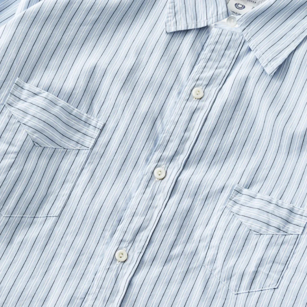 The fabric is an original double-layer construction by the brand, made by sewing together two thin chambray layers. This creates a distinctive volume and, with repeated wear and washing, the texture evolves, developing into a uniquely striking presence.