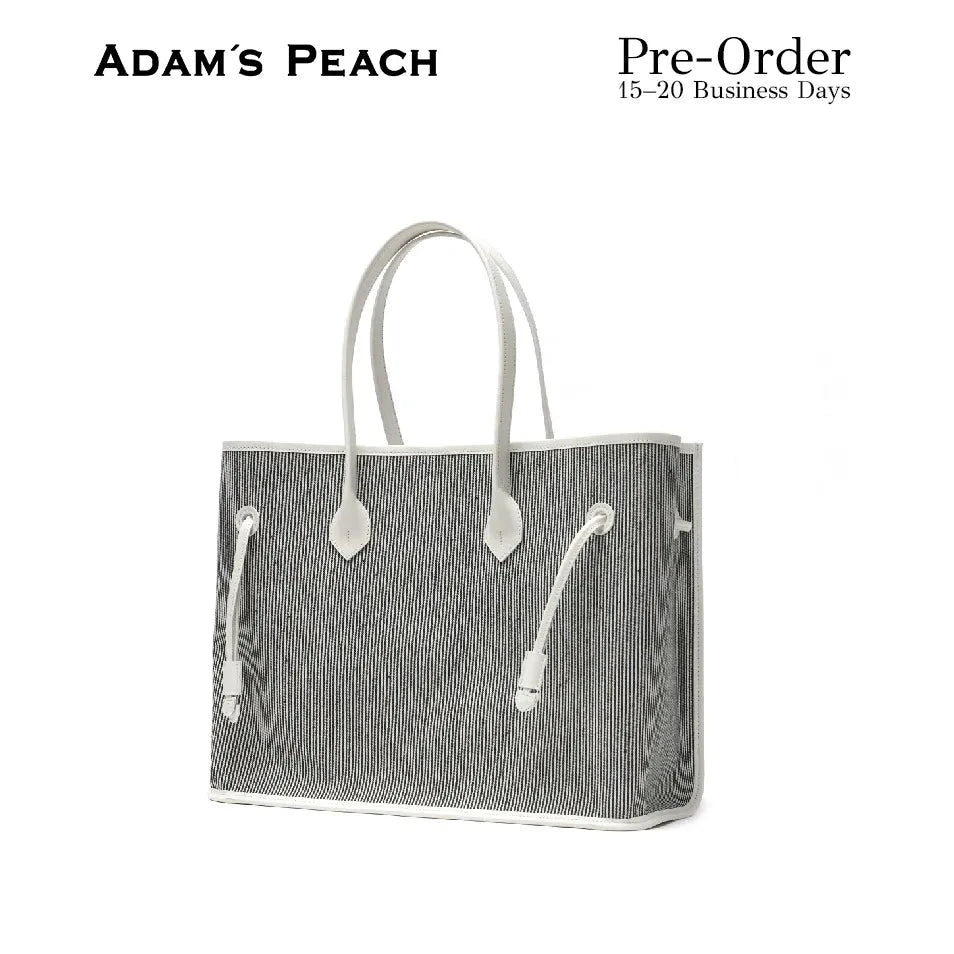 Crafted from cool, seasonal canvas and finished with luxurious leather in a striking color scheme, itboasts a main compartment and inner pockets, and the adjustable front drawstring allows for customization. This