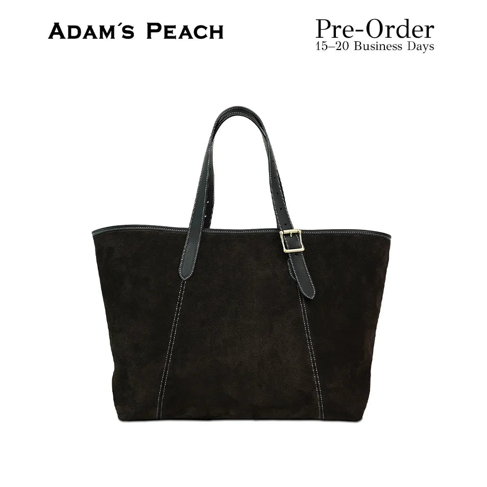 Black Suede by Adams SpeechTote bagIt is made using high quality suede and vegetable tanned cowhide.Handmade in Korea by skilled craftsmen with over 40 years of experience.The interior is made of 100% cotton and black canvas fabric. There are two large pockets. The handle and bottom are made of high-quality vegetable tanned cowhide. The decorations are made of high-quality materials. There is a point color detail on the inside where the plate and the side are connected. The design has no seams on the sides, so there is less sideways flaring over time.