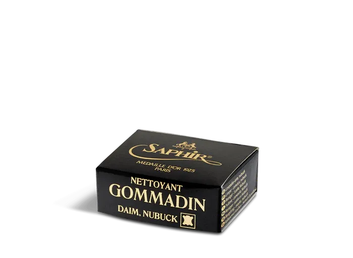 ยางลบ Gommadin ได้รับการออกแบบมาเป็นพิเศษเพื่อขจัดสิ่งสกปรกบนพื้นผิวและคราบเหนียวบนพื้นผิวของหนังกลับและหนังนูบัค