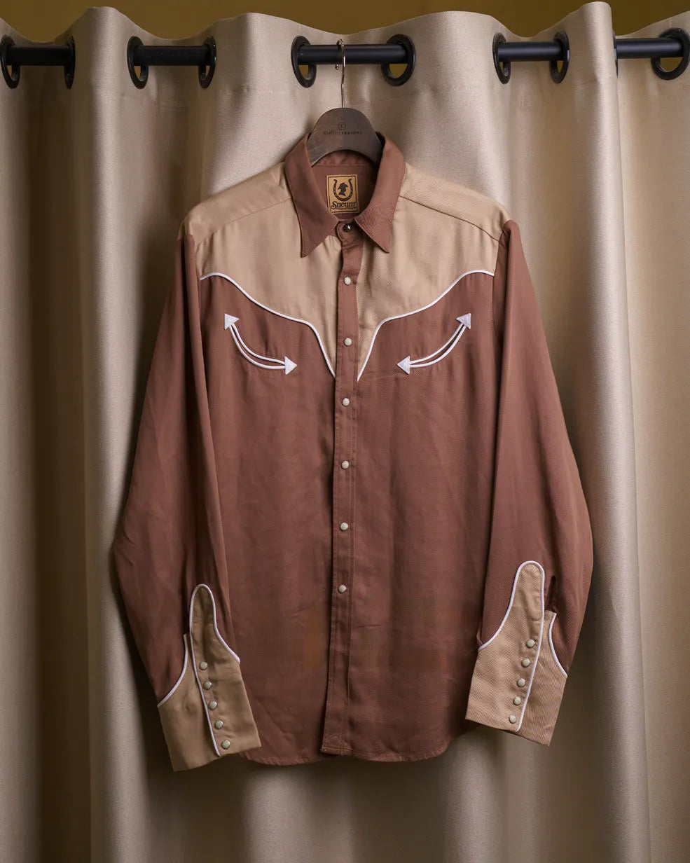 Named after the iconic 'smile'-shaped pockets, often accentuated with contrasting piping or stitching, this design was crafted to add a visually distinctive element to Western shirts, making them truly stand out. While Western wear is deeply rooted in the rugged functionality of cowboy culture and influenced by Mexican vaquero attire, the smile pocket shirt emerged as a symbol of Western flair and individuality. Popularized by rodeo performers and country musicians in the mid-20th century, this pocket style has since become synonymous with classic Western wear. It is with this in mind that we have designed our take on this shirt type, with the aim of giving it a more contemporary spin