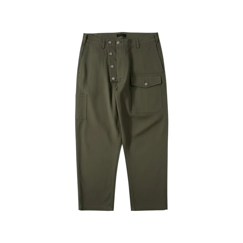 กางเกงที่ได้แรงบันดาลใจจาก WWII USN Deck Tanker Overall นำรูปแบบดั้งเดิมมาปรับใหม่ให้เป็นทรงกางเกง เพิ่มความคล่องตัวและสวมใส่ง่ายขึ้น โดยยังคงเสน่ห์ของงานวินเทจไว้อย่างครบถ้วน ผลิตจาก ผ้า HBT Cotton 100% ที่มีน้ำหนักมาก แข็งแรงทนทาน แต่ยังคงใส่สบายในทุกการเคลื่อนไหว