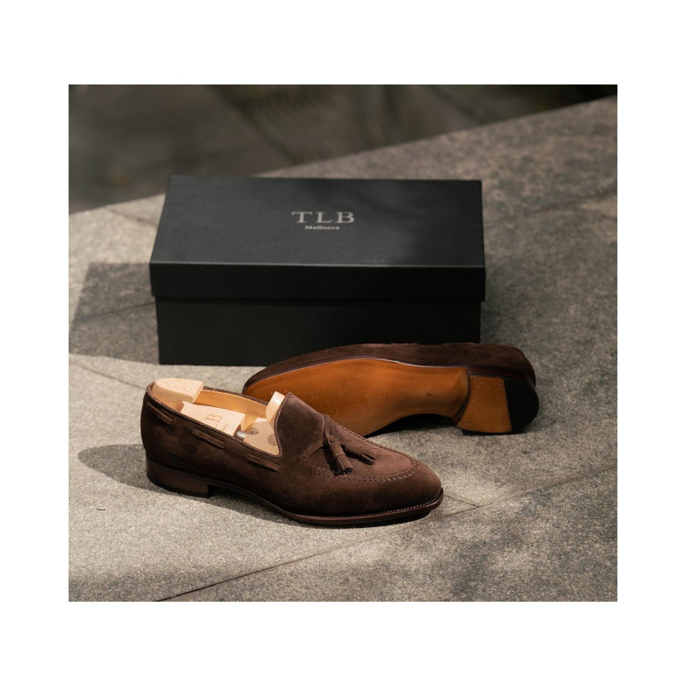 A tassel Loafer model featuring a beautifully handsewn apron made with Brown Suede from Charles F.Stead. We chose our last OLIVER with width F. Round toe, elegant and comfortable fit. A great pairing for any outfits.