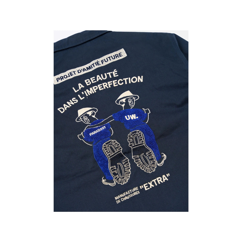 Taken from the old English word for work jacket, the Warmus Jacket bridges the gap between a formal style and a workwear jacket. This UW x Paraboot collaboration is made in exclusive Navy Twill, fully lined with collaborative embroidery design on the back and logo design on the front chest.