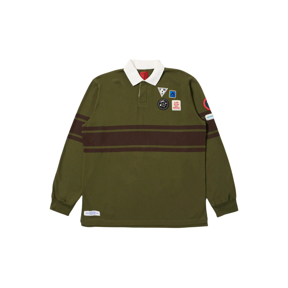 A loose rugby shirt style with a contrast ribbed collar and printed tonal stripes for our Topologie collaboration.