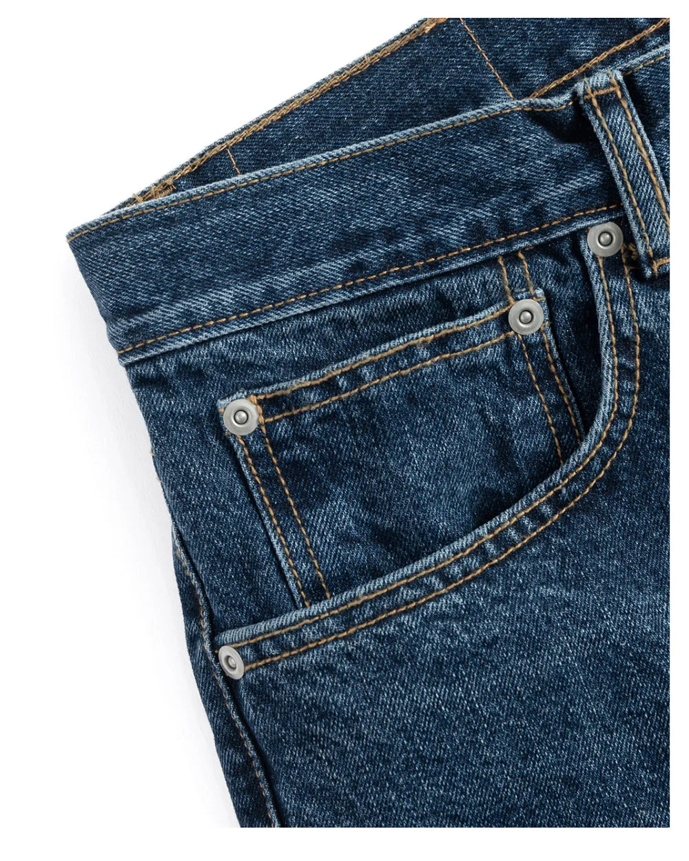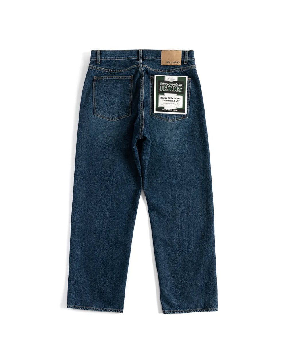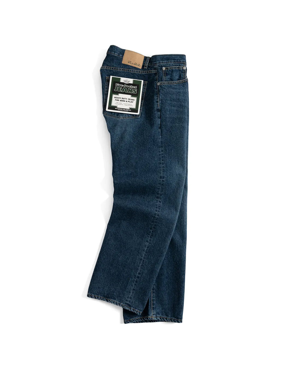 The Wild Bricks Five Pocket Denim [LOT. 211] features a vintage texture and a relaxed silhouette. The design focuses on balancing the fit and details, with 13oz fabric and a loose straight fit. The washing process gives the denim a soft feel, and it showcases natural aging effects commonly seen in vintage denim.
