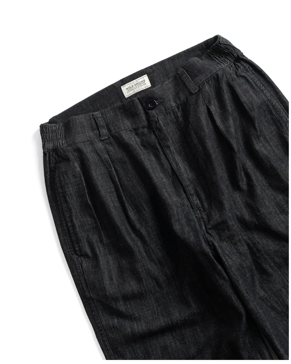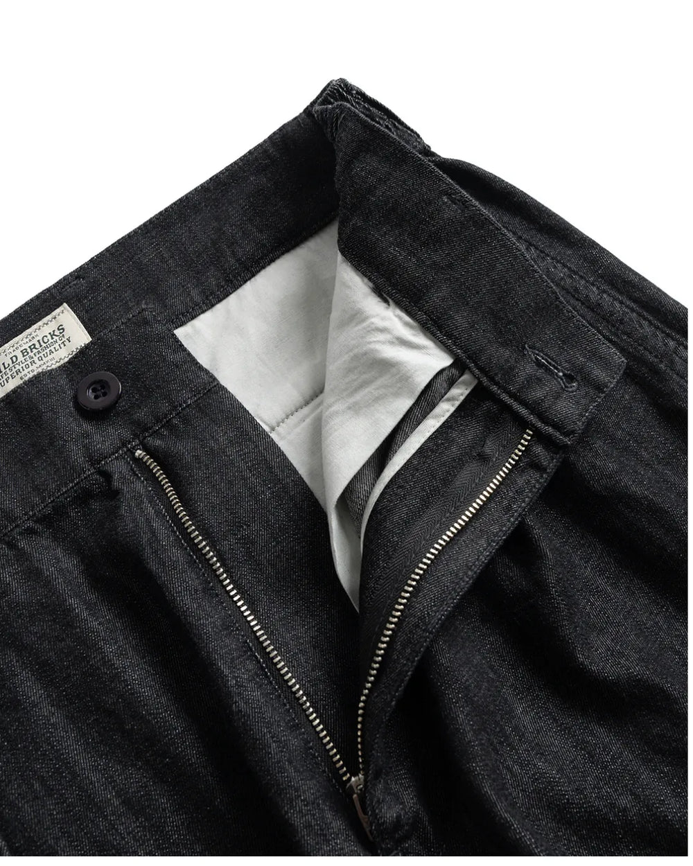 These Wildbricks chino pants are inspired by French military chinos (M52). They feature double pleats and side banding details for a comfortable fit. The pants have undergone Garment Washing to provide a soft feel and a vintage aesthetic. Their casual silhouette allows for a wide range of styling options. These chinos were created with Wildbricks’ unique pattern and making, developed over a long period of research and development.